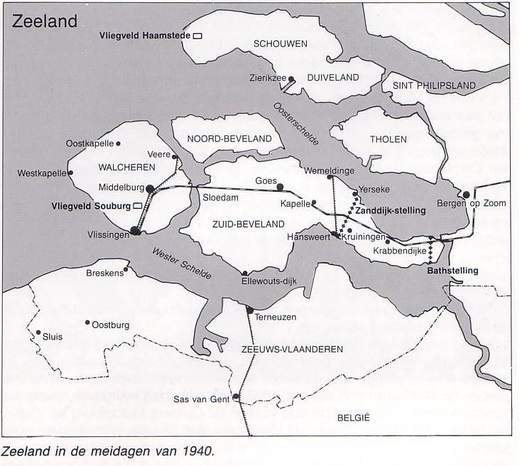 Slagveld Sloedam; hoofdstuk 7; Blz.90; ‘De Duitse aanval op Zeeland’‘Chaos in Nederlandse verdediging bij de Bathstelling’ Het eerste obstakel voor de Duitse troepen was de Bathstelling. Deze stelling was meer een tankgracht, die de opmars van de Duitsers minimaal moest vertragen. Deze verdediginglinie lag tussen de Brabantse wal en het geїnundeerde gebied. De stelling was bezet door het 14eGrensbataljon onder commando van Maj. F.G. Triebel. Op 14 mei tegen de avond rond 18.00 uur was de stelling al met artillerie beschoten vanuit Woensdrecht. (lees ook H1.1; het deel van 14 mei uit Adriaan zijn dagboek). Hoewel er nauwelijks schade werd aangericht, namen de Nederlandse soldaten al snel de benen en werd de verdedigingslinie grotendeels verlaten. Slechts een klein deel van de hier gelegerde troepen bleef op zijn post. \Maj. Triebel was door deze vlucht genoodzaakt overleg te voeren met zijn commandanten, Res. Luit.-Kol. Bruins. Deze gaf om 20.00 uur officieel het bevel om de stelling te ontruimen waarna een ongeordende terugtocht plaatsvond. Op 15 mei 1940 vroeg in de morgen openden Duitse troepen van het SS-Regiment ‘Deutschland ‘ de aanval op de Bathstelling. Het uiteindelijke doel was om Zuid- Beveland en Walcheren te bezetten en door te stoten in de richting van Goes, Middelburg en tenslotte Vlissingen. Volgens Nieuwlander Jan Meliefste, die bij de Bathstelling als telefonist en seiner actief was, was er sprake van totale chaos rondom de stelling: ‘De hele organisatie had iets van een klucht. Onze kapitein(Mulder volgens Adriaan) zat als een kind te janken en stamelde voortdurend’Wat moeten we toch beginnen?’ Die man kon absoluut niks. Alles wat we voorstelden vond hij goed. Hij had absoluut geen opdrachten meegekregen van de legerleiding. Op een gegeven moment telefoneerde ik met het hoofdkwartier van de stelling en het bleek dat iedereen was weggelopen. Er was geen kip meer te bekennen en mij hadden ze maar laten liggen. En toen was er nog geen Duitser te zien geweest! We wisten van geen toeten of blazen. Toen we een vliegtuig met een Duits kruis zagen zei iemand: ‘Kijk, daar vliegt iemand van het Rode Kruis’. |